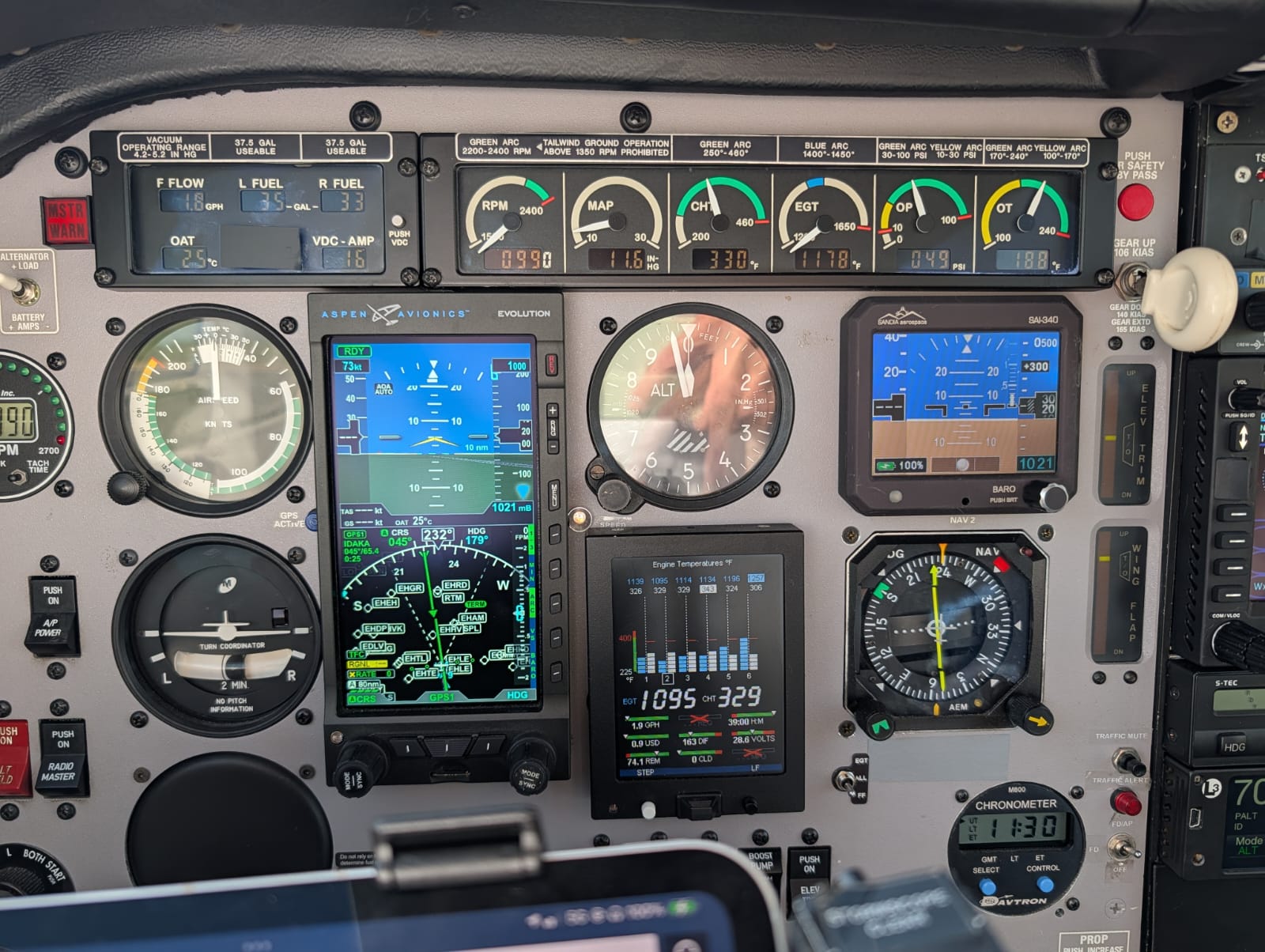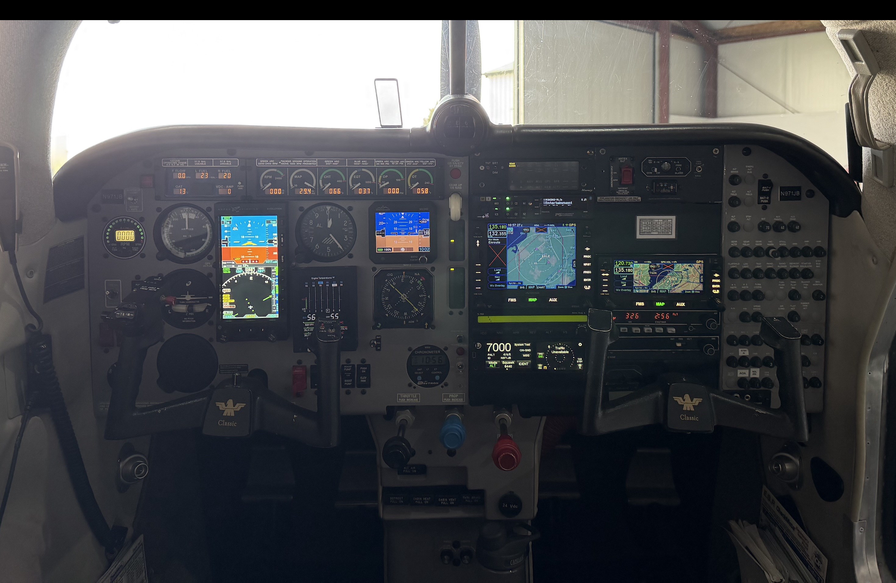 Step aboard MSN 30-0024 and experience a cockpit upgraded to the highest standard. With state-of-the-art technology and every conceivable, modern functionality at your fingertips, you are assured of a safe and efficient flying experience. Aspen Pro Max PFD with hazard awareness, synthetic vision, AOA, S-Tec 55x integration Avidyne IFD-540 #1 GPS/NAV/COM (with Wifi and Bluetooth) Avidyne IFD-440 #2 GPS/NAV/COM L3 Lynx NGT-9000 ADS-B transponder with TAS and Wifi WX-500 stormscope PMA-450B Bluetooth audio panel Golze ADL200 Iridium weather + ADLS1G ADS-B broadcast (weather on avionics) Alpha Systems Eagle AOA King KR-87 ADF King KN-62A DME Sandia SAI-340 standby instrument (vacuum removed) S-tec 55x autopilot with autotrim (integrated with Aspen PFD for ALT capture/hold) + spare autopilot computer JP Instruments EDM-730 Engine monitor with fuel flow S-tec ST-180 #2 HSI  |