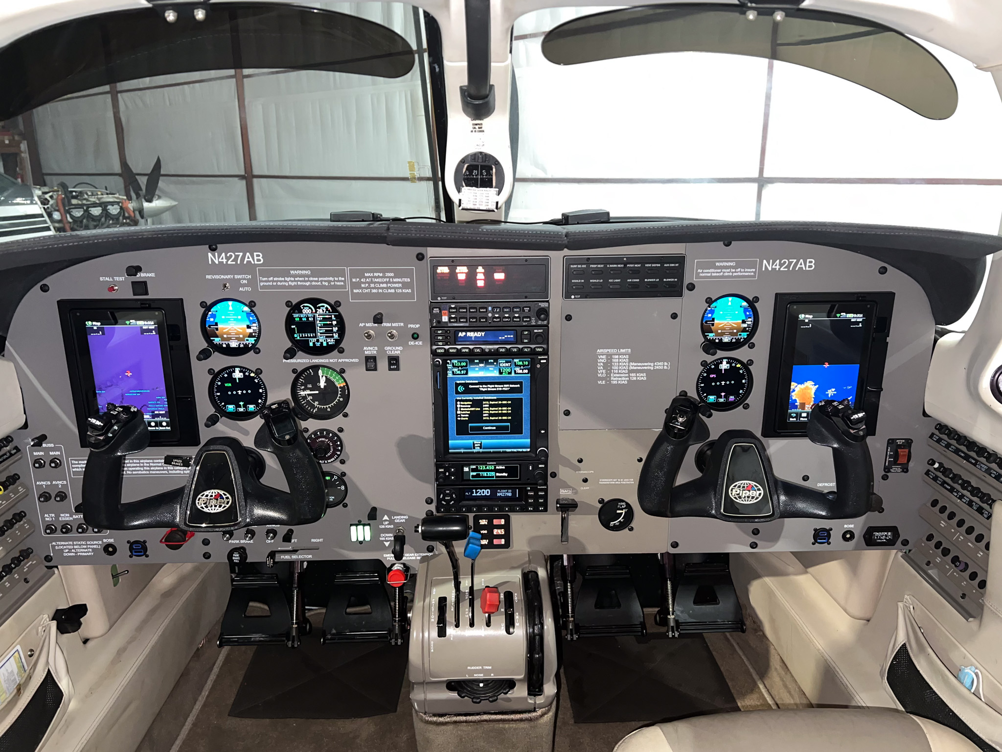 FIKI Certified (boots, heated prop, heated glass windshield) Extended Range Tanks – 140 gals. Factory Air Conditioning Hot Prop Speed Brakes LEMO Plugs – All Seats LED Landing Light Wingtip Strobes Flashing Beacon Electric Pitch Trim Rudder Trim Dual Push-to-Talk Switches Dual Toe Brakes  |